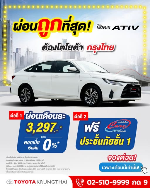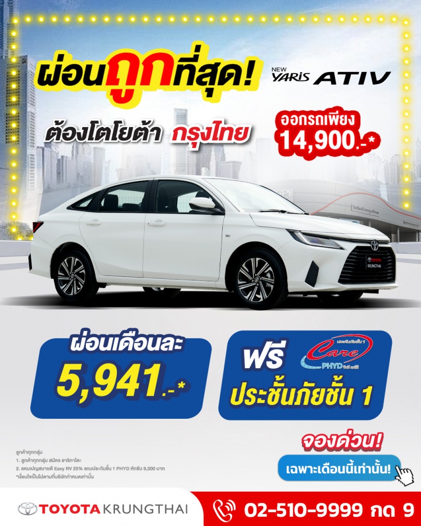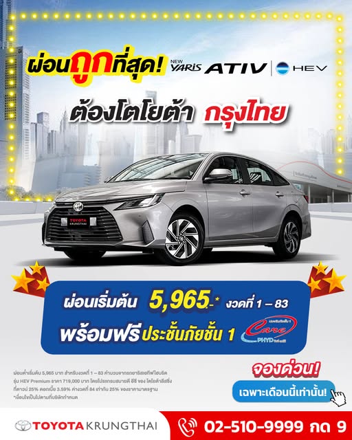สอบถามข้อมูลเพิ่มเติมได้ที่ โทร 0-2510-9999 Facebook: @toyotakrungthai Line ID: @toyotakrungthai CALL CENTER ลูกค้าสัมพันธ์ 0 2510 9999 กด 9