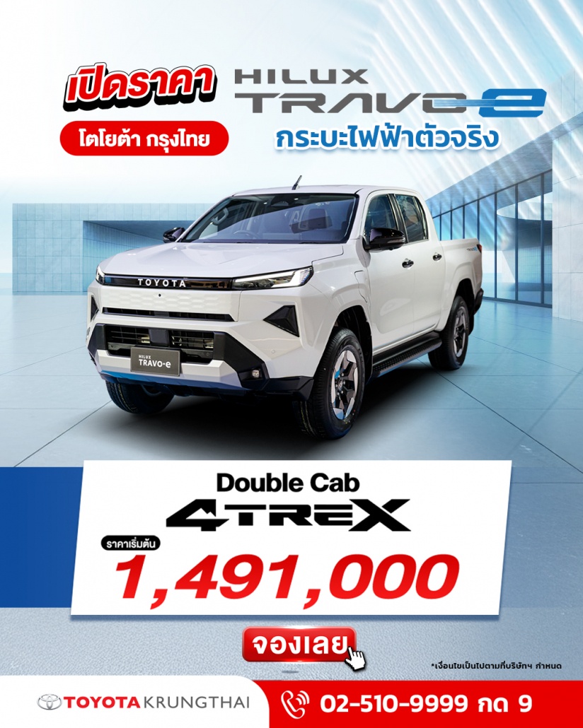 พร้อมรับจอง กระบะไฟฟ้าตัวจริง เปิดราคาอย่างเป็นทางการ ครั้งแรกในโลก! TOYOTA HILUX TRAVO-e กับโตโยต้า กรุงไทย