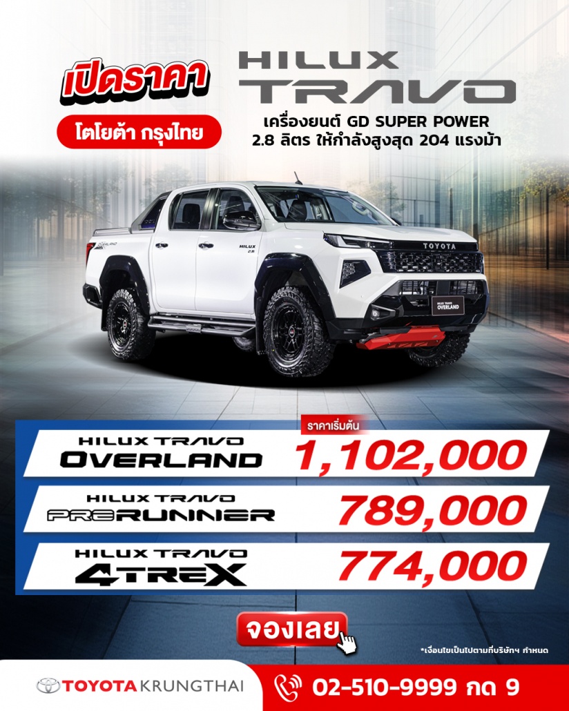 พร้อมรับจอง เปิดราคาอย่างเป็นทางการ ครั้งแรกในโลก! TOYOTA HILUX TRAVO กับโตโยต้า กรุงไทย