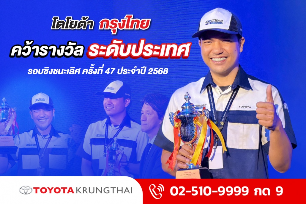 “โตโยต้า กรุงไทย” เดินหน้าสู่มาตรฐานบริการระดับสูงสุด! #คว้ารางวัล รองชนะเลิศอันดับ 2 ในการแข่งขันทักษะการบริการโตโยต้า รอบชิงชนะเลิศ ครั้งที่ 47 ประจำปี 256817/11/2025/in Blog, เรื่องล่าสุด/by admin “โตโยต้า กรุงไทย” เดินหน้าสู่มาตรฐานบริการระดับสูงสุด! #คว้ารางวัล รองชนะเลิศอันดับ 2 ในการแข่งขันทักษะการบริการโตโยต้า รอบชิงชนะเลิศ ครั้งที่ 47 ประจำปี 2568.✨ประเภทช่างเทคนิค ระดับพื้นฐานผู้คว้ารางวัล : คุณปิยะณัฐ โสตะบรรณ์.การแข่งขันทักษะการบริการลูกค้าโตโยต้า ถือเป็นเวทีสำคัญระดับประเทศ จัดขึ้นเป็นประจำทุกปี เพื่อยกระดับมาตรฐานงานบริการของศูนย์บริการโตโยต้า ครอบคลุมหลากหลายทักษะ.สำหรับ “โตโยต้า กรุงไทย” ในฐานะดีลเลอร์ชั้นนำของประเทศไทยเรายังคงมุ่งมั่นพัฒนาคุณภาพการให้บริการอย่างไม่หยุดยั้ง ด้วยทีมงานมืออาชีพที่พร้อมทุ่มเท เพื่อมอบประสบการณ์ที่ดีที่สุดให้กับลูกค้าทุกท่าน ในวันนี้และต่อไปในอนาคต https://www.toyotakrungthai.com/wp-content/uploads/2025/11/แข่งขันทักษะ-2.jpg 1280 1920 admin https://www.toyotakrungthai.com/wp-content/uploads/2021/12/logo_jpg.jpg admin2025-11-17 08:43:252025-11-17 09:09:32“โตโยต้า กรุงไทย” เดินหน้าสู่มาตรฐานบริการระดับสูงสุด! #คว้ารางวัล รองชนะเลิศอันดับ 2 ในการแข่งขันทักษะการบริการโตโยต้า รอบชิงชนะเลิศ ครั้งที่ 47 ประจำปี 2568
